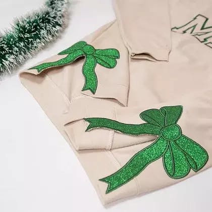 šāØ Deck the halls in style! Introducing ourĀ Custom Two Side Bows Cut-Out Sweatshirt! šThis chic sweatshirt features a stunning side bow applique and a sprinkle of glitter that will make you shine this holiday season! Perfect for cozy gatherings or festive outings. Get your unique look now and spread the merriment! šā¤ļøĀ