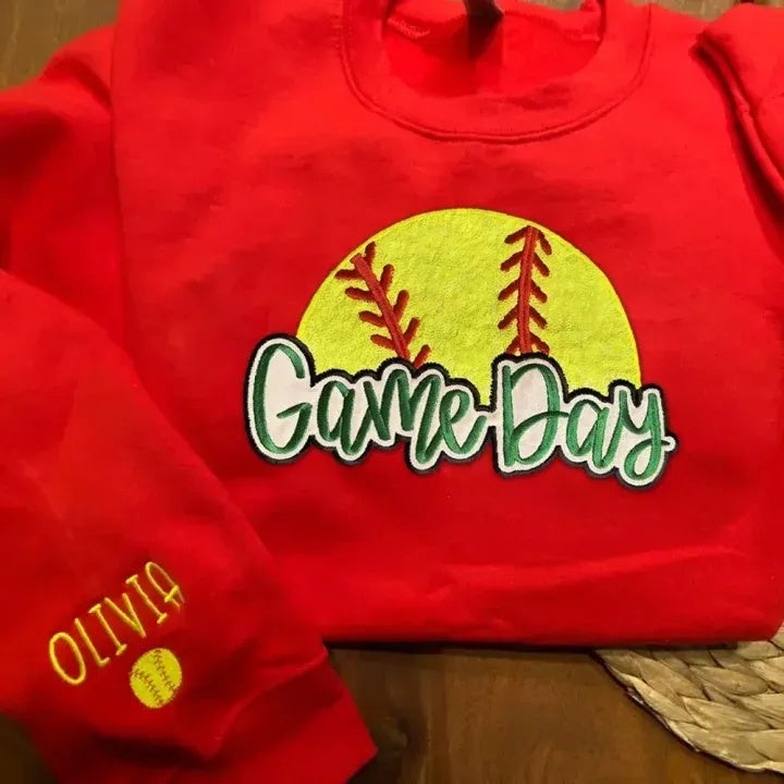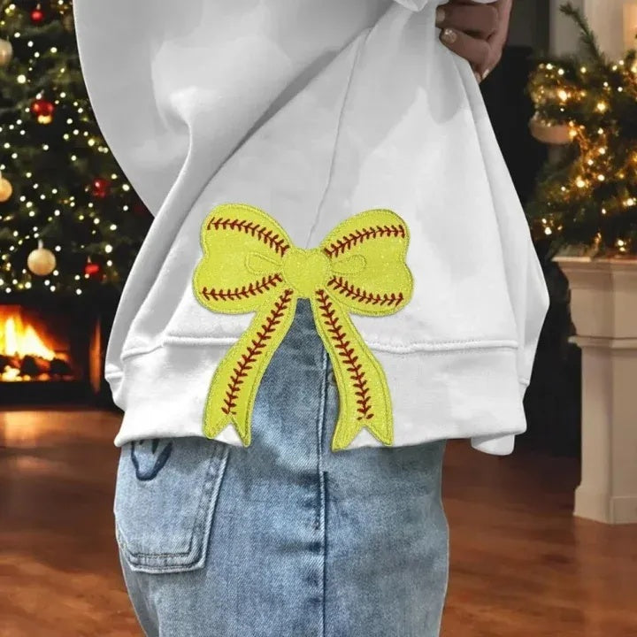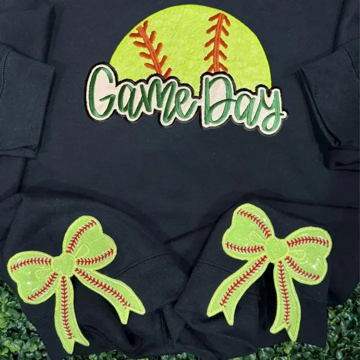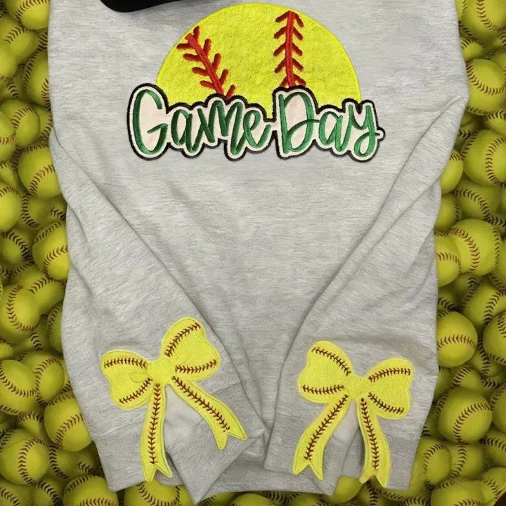 Personalized Softball Game Day Glitter Sweatshirt with Side Bows Softball Mom Sweatshirt