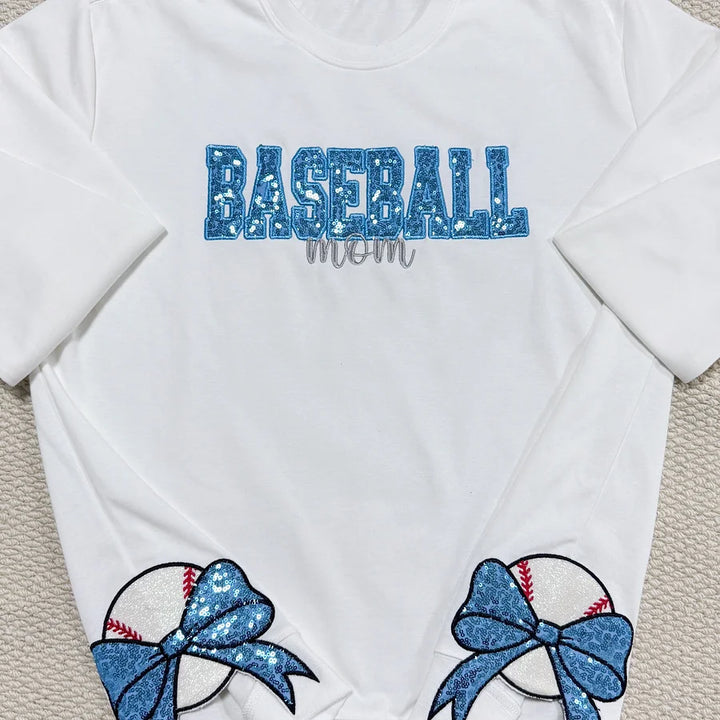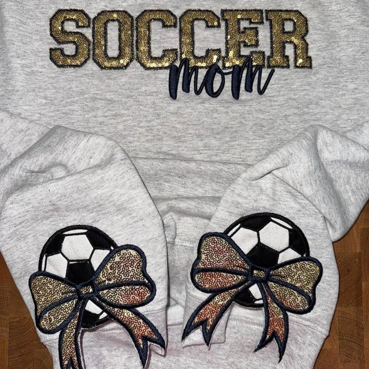 Personalized Sports Mom Sweatshirt Sequin Embroidery with Side Bows