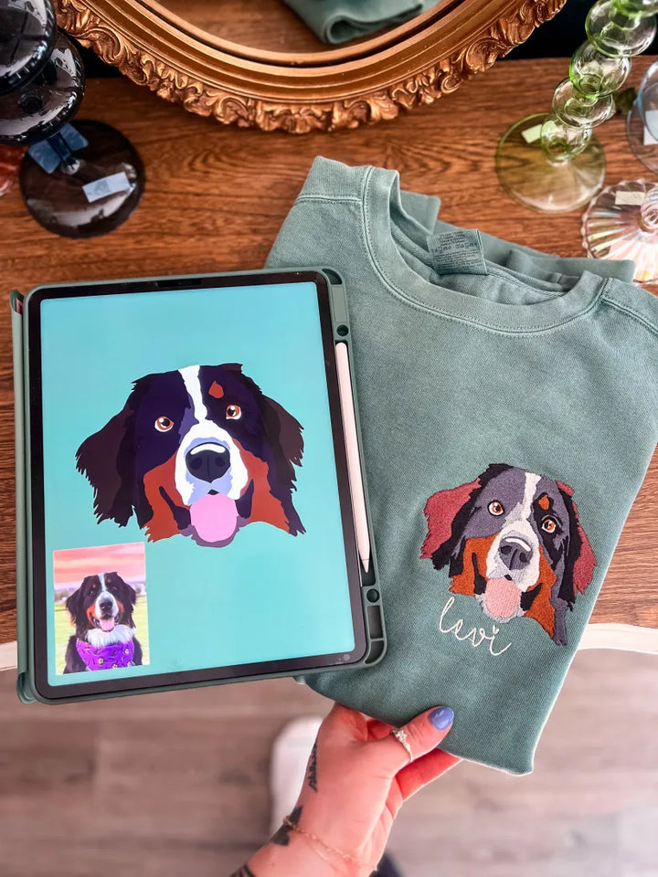 Experience the latest addition to Our Canine Collection - Picture Purfect Pet Embroidered Tops. This listing, for one or two pets, gives you the opportunity to upload a photo of your beloved companion or companions (Please refer to the images for guidelines) and personalize it with their name/s.