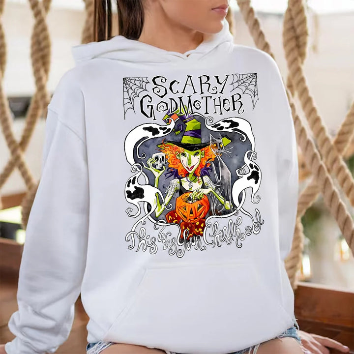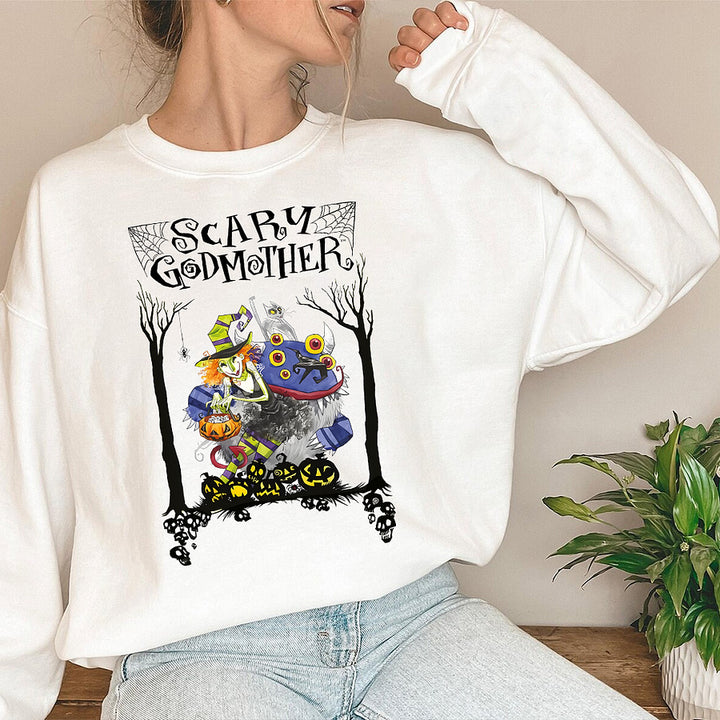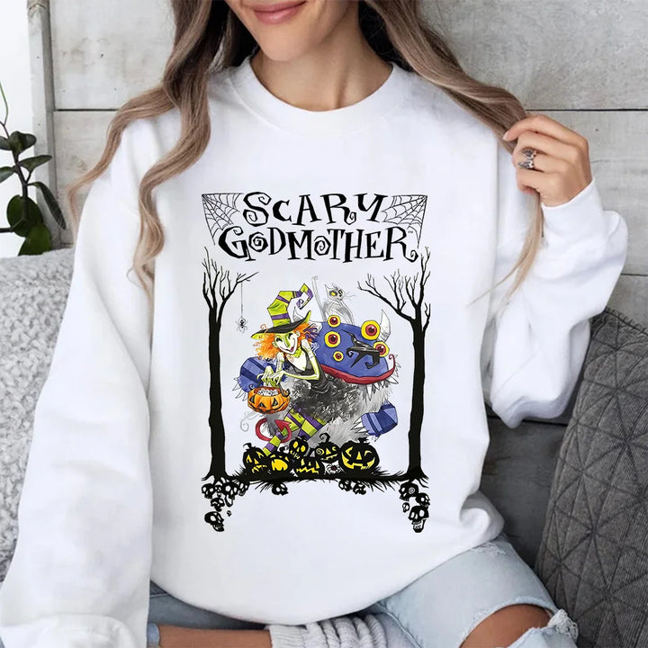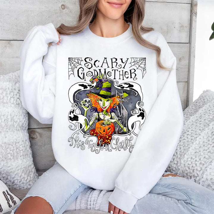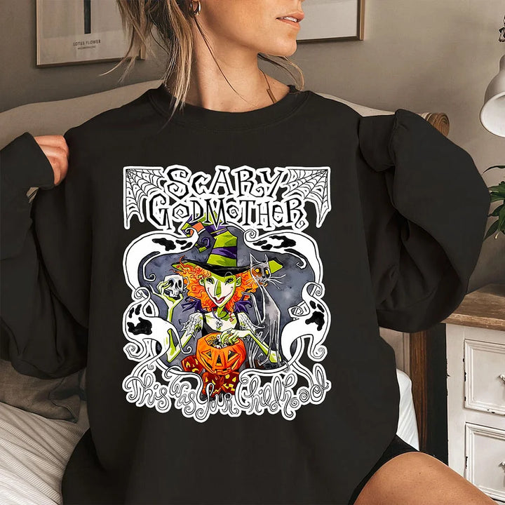 Scary Godmother Halloween Retro Witch Spooky Pumpkin Graphic Sweatshirt