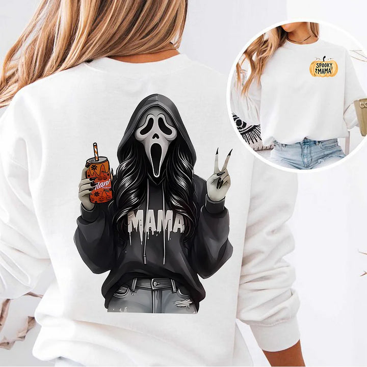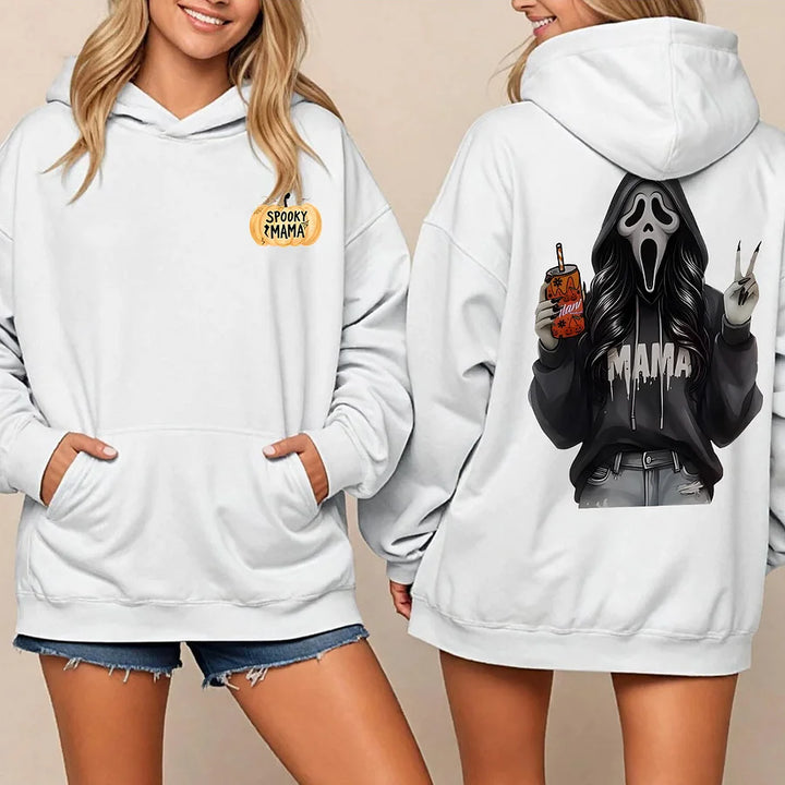 Spooky Mama/Dada Halloween – Fun Ghost Face Girl Drinking Water Design, Cozy Unisex Hoodie For Pumpkin Patch, Trick Or Treat And Autumn Vibes