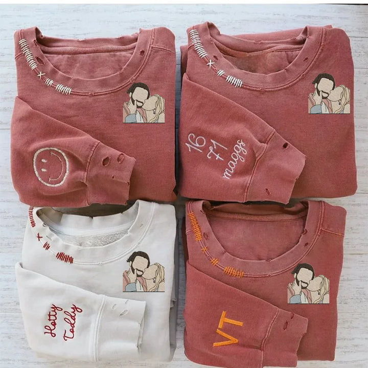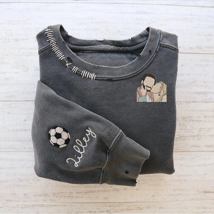 VINTAGE CUSTOM CREW-Custom Embroidered Hand Distressed Photo Sweatshirt